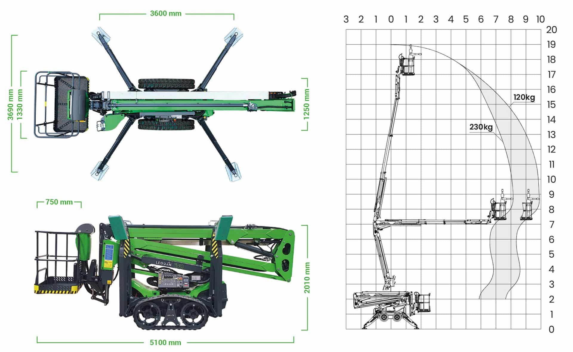 Leguan 190 er en beltegående dieseldrevet terrenglift. Liften har en arbeidshøyde på 19m og 230 kg i korgen.