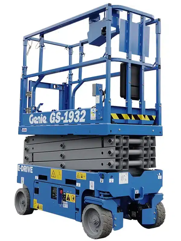 Genie 1932 er en elektrisk sakselift som egner seg best for innendørs bruk. liften har en arbeidshøyde på 8m og 227kg kapasitet i korgen.
